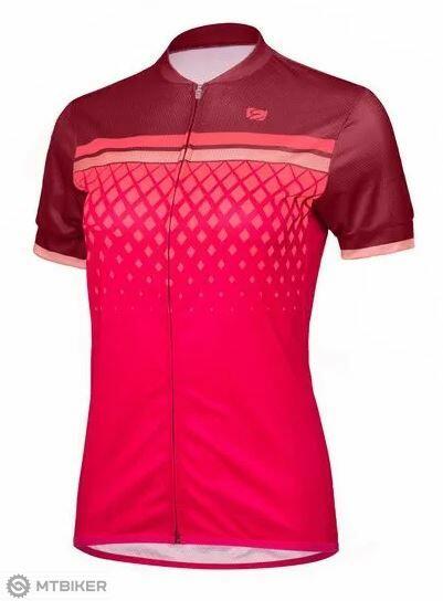 Női kerékpáros mez, funkcionális MicroCool anyagból, modern gyémánt mintával, 3 hátsó zsebbel, fényvisszaverő elemekkel. Etape Diamond női mez modern gyémánt mintával nagyon kellemes funkcionális anyagból MicroCool finom poliészter szálakból. A külső 3D szerkezet alkalmazott technológiája növeli a verejtékelvezetést. Az alkalmazkodó szabásnak köszönhetően ez a trik