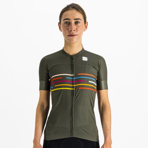 Női kerékpáros mez - rövid ujjú Típus: teljes cipzáras szétnyitható Anyag: 100% poliészter Szín: zöld Minta: logóval Zseb : hátsó