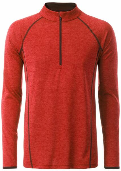 Férfi funkcionális hosszú ujjú felső sporthoz és fitneszhez lélegző, gyorsan száradó anyagból. Cipzáros állvédelemmel ellátott. Anyaga: 100% poliészter, súlya 130 g/m2 A felső megvásárolható női változatban is.