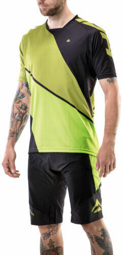 Rövid ujjú kerékpáros mez. Félig zippzáras. Rugalmas, lélegző, UV szűrős 100% poliészter anyag. 3 hátsó zseb.