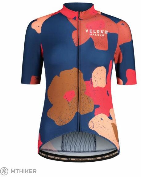 Női kerékpáros mez rövid ujjal, ideális meleg időre. Anatómiailag megformált konstrukció , lazább szabású, meghosszabbított hátrésszel a maximális kényelem és a sérülékeny területek védelme érdekében. A csúszásgátló csíkkal ellátott elasztikus szegély nem szűkít és megakadályozza a kellemetlen feltekeredést . A teljesen nyíló, gördülékeny működésű cipz