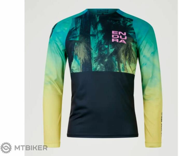 Férfi Endura Tropical Print LTD hosszú ujjú trikó újrahasznosított anyagokból minden típusú hegyi kerékpározáshoz, korlátozott kialakítással. A mez karcsú szabású, gyorsan száradó strapabíró anyagból készült. Anyaga: 100% újrahasznosított poliészter. Tevékenység : Hegyi kerékpározás Szín : sárga, zöld, kék Ajánlott : Férfi / UNI Cipzár : cipzár nélkül Any