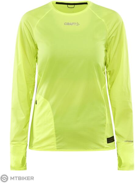 CRAFT PRO Hypervent LS Wind ultrakönnyű női futópóló, hosszú ujjú, elöl szélvédővel. Anyag: elülső rész - 92% poliamid, 8% elasztán; hátrész - 88% újrahasznosított poliészter, 12% elasztán nagyon alacsony súly szélálló elülső rész puha és jól lélegző anyag a háton a hónaljban tökéletes izzadságelvezetés gyorsan száradó anyag hosszabb ujjú hüvelykujj lyuka