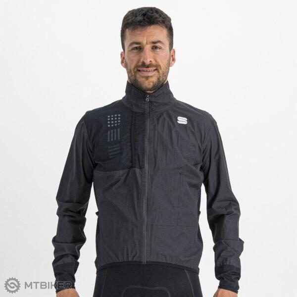 Sportos DR kabát Védelmet nyújt szél és eső ellen . Egy hálós zsebbel van felszerelve egy energiarúd vagy más olyan dolgok számára, amelyeket vezetés közben szeretne kéznél tartani. A kabát becsomagolására is szolgál, miközben rugalmas zsinórral a kormányra akaszthatod és így helyet takaríthatsz meg a mezzsebedben vagy a hátizsákodban. Természetesen vannak fényvisszav