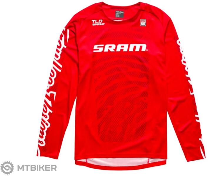 Férfi hosszú ujjú Troy Lee Designs Sprint Sram Shifted mez, versenyszabású eduro-hoz és pályákhoz. Lézerrel perforált szellőzőnyílásokkal és oldalszellőzéssel rendelkezik az Air Mesh anyagnak köszönhetően. A Poly Spandex Jacquard Mesh anyag, amelyből készült, szintén gyorsan szárad és jól elvezeti a nedvességet.