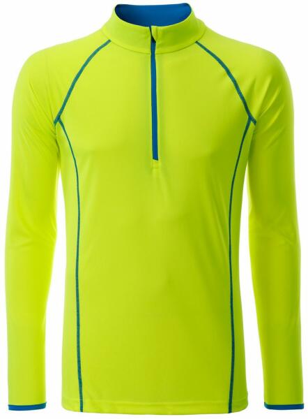 Férfi funkcionális hosszú ujjú felső sporthoz és fitneszhez lélegző, gyorsan száradó anyagból. Cipzáros állvédelemmel ellátott. Anyaga: 100% poliészter, súlya 130 g/m2 A felső megvásárolható női változatban is.