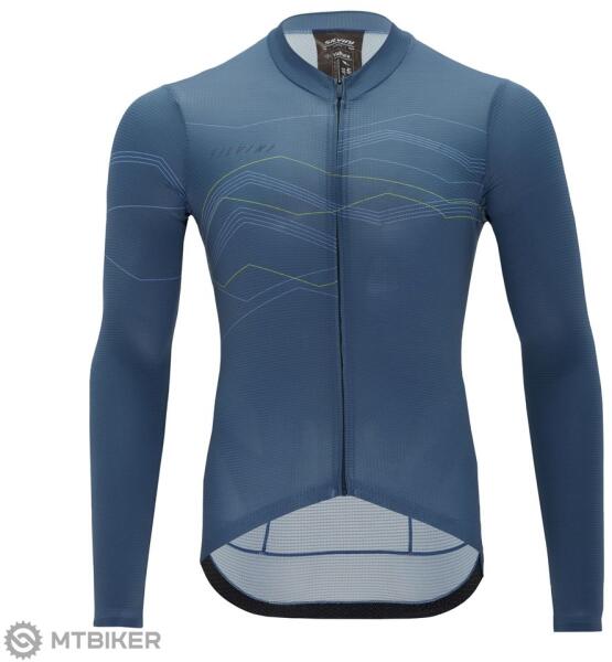 Könnyű férfi kerékpáros mez hosszú ujjú, légáteresztő és rugalmas anyagból Light MESH. A mez keskeny szabású, csúszásgátló szilikon szegéllyel és három hátsó zsebbel rendelkezik a kényelemről. Vannak védő fényvisszaverő elemek.