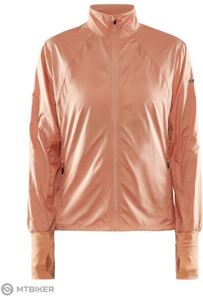 Craft ADV Essence Wind női kabát, narancssárga Női könnyű kabát CRAFT ADV Essence Wind alkalmas futásra vagy egyéb sporttevékenységekre változékony szeles időben. szél- és részben vízálló anyag optimális légáteresztő képességgel középső cipzár béléssel bélelt és kopás elleni állvédelemmel végződik perforáció a mellkasban és a hónaljban a fokozott szellőz