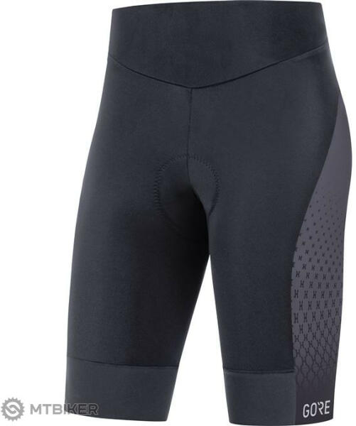 Női kerékpáros rövidnadrág meleg időre, különböző tulajdonságokkal rendelkező anyagok keverékéből (80% poliamid biztosítja az izzadság elvezetését a bőrről és légáteresztő képességet, 20% elasztán a mozgásszabadságért és a rövidnadrág szoros illeszkedéséért). Kényelmes széles elasztikus derékrész - nem szűkül és alkalmazkodik az alakhoz. A nadrág hossz