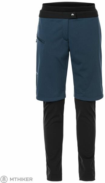 VAUDE Egész éves Moab 3in1 női nadrág 3 az 1-ben softshell nadrág MTB-hez. A rövidnadrág elsődleges anyaga 100%-ban újrahasznosított poliészter, belül enyhén feszített a térdtől felfelé a hosszú belső nadrág membránnal rendelkezik, amely további védelmet nyújt a nedvesség ellen , és egy kis cipzáras zseb a hátsó derékrészben