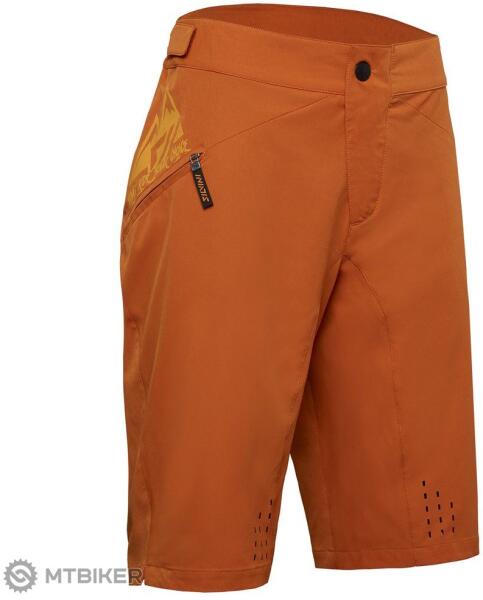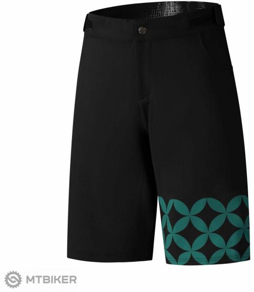 Rugalmas és légáteresztő szőtt sztreccs anyagból készült női enduro rövidnadrág. A rövidnadrág szabása laza, a hátsó része megemelkedett. A derekán tépőzáras rögzítés, az oldalán két cipzáras zseb található.
