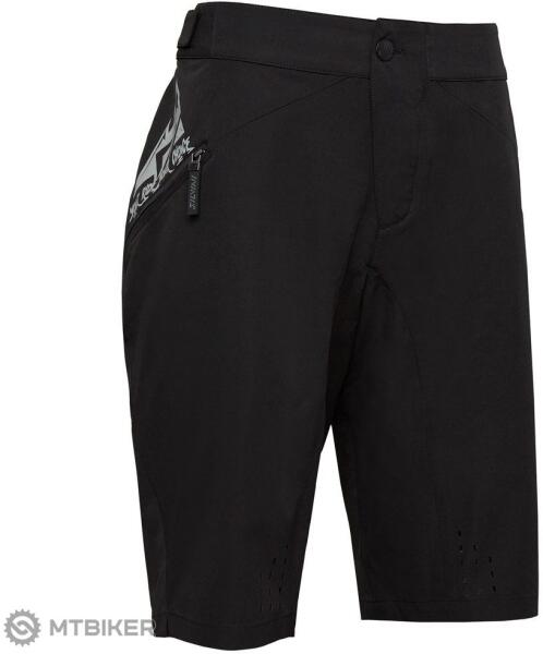 Rugalmas és légáteresztő szőtt sztreccs anyagból készült női enduro rövidnadrág. A rövidnadrág szabása laza, a hátsó része megemelkedett. A derekán tépőzáras rögzítés, az oldalán két cipzáras zseb található.