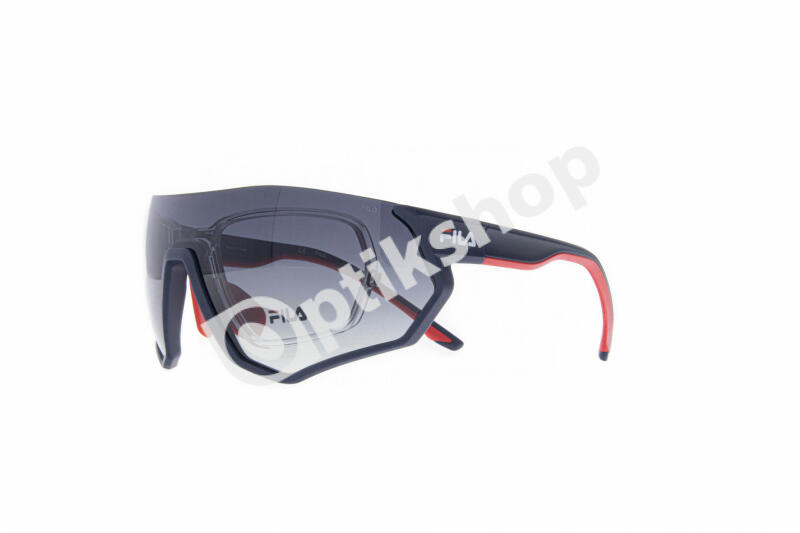 Pajzsos kialakítású műanyag sportszemüveg kék színben, dioptrizálható bepantintós betéttel. A front ívelt formájának köszönhetően körkörösen védelmet nyújt a napfény, a szél és a por ellen is. Puha, állítható, gumi orrtámasszal és szárvéggel.