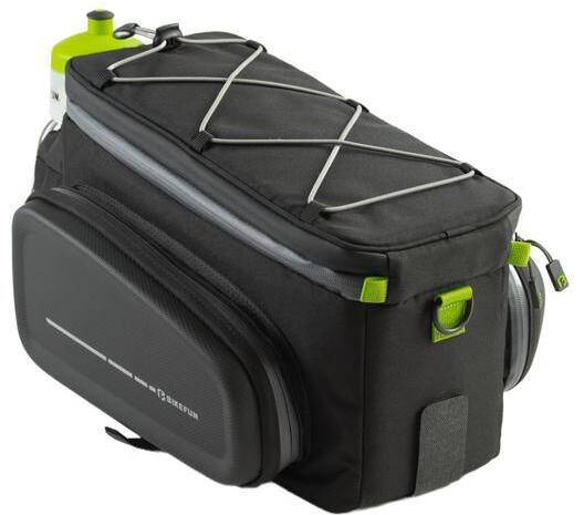 Tulajdonságok BFPB03Bővíthető csomagtartó táska - 600D rPET (újrahasznosított anyag) - W/R kezelés (vízlepergető) - Könnyű rögzítés tépőzáras pántokkal - A külső húzózsinórok extra tárolást tesznek lehetővé - Vízálló cipzár - Palackrekesz a hátsó oldalon - Belső háló és zsebek - Bővíthető oldalsó táskák EVA habszerkezettel - Hatalmas kapacitás különb