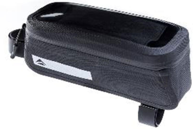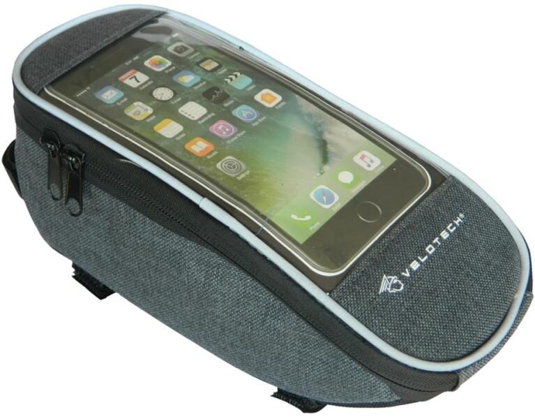 Váztáska telefontartós 1 részes Anyaga: 600D vízlepergető polyester Szín: Sötét szürke Méret: 26 x 10,5 x 10,5 cm Tépőzáras rögzítés a könnyű fel és leszereléshez. Átlátszó PVC borítás a mobiltelefon használatához. Fényvisszaverő szegély, vízálló zippzáras záródás.