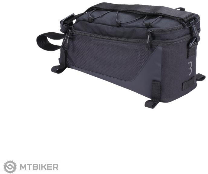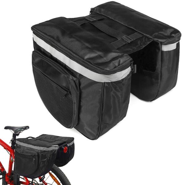 Többfunkciós nagy kerékpártáska, a csomagtartóra szerelhető. Hosszabb biciklitúrák alkalmával rendkívül hasznos, ruhákat, apróságokat, élelmiszereket pakolhatunk bele. A táska 2 nagy rekesszel rendelkezik, kisebb cipzáras zsebekkel. Fényvisszaverő csíkkal van díszítve, hogy növelje a biztonságot utazás közben. Univerzális táska a legtöbb csomagtartóhoz illeszkedik, t