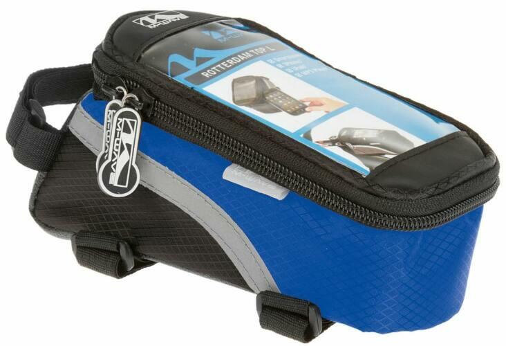 M-Wave Rotterdam Top L felsőcső táska telefon tartóval, 1L, fekete-kék Felsőcső váz táska Erős víztaszító táska anyagból készült 3 univerzális tépőzár Biztonság növelő fényvisszaverő csíkok 270° fokban nyitható felsőrész Párnázott ütés/rezgés csillapító kialakítás Az érintőkijelző használható az áttetsző borítón keresztül is A legtöbb divatos mobi