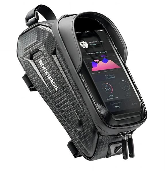 Rockbros B68-1 páncélozott biciklis táska telefontartóval - fekete Indulj útnak teljes magabiztossággal, hogy a szükséges dolgaid biztonságban és mindig kéznél vannak. A Rockbros B68-1 biciklis táska vízálló anyaggal, átlátszó telefontartó rekesszel és praktikus tépőzáras rögzítési rendszerrel van felszerelve, ami tökéletes társ bármely kerékpáros kalandhoz. Élvez