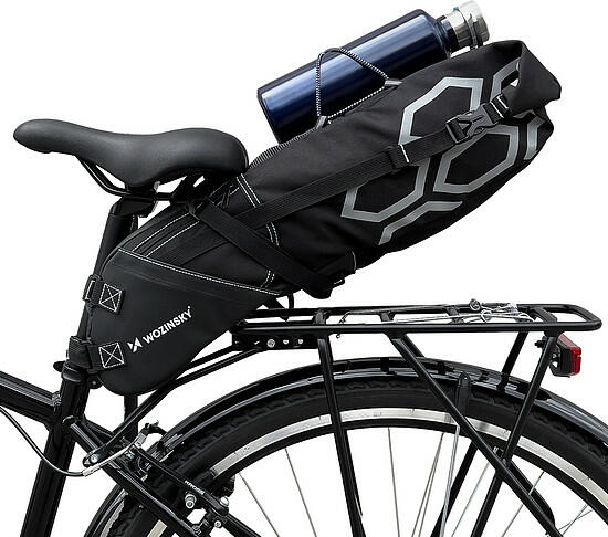 A Wozinsky WBB9BK kerékpártáska legfontosabb előnyei: A 12 literes táskában sok holmi elfér : kerékpáros kiegészítők és fényképészeti felszerelések, ruhák vagy egy kis sátor. Megvédi a szállított tartalmat . Az üléstáska vízálló anyagból készült, ellenáll a sérüléseknek és a szakadásnak. Sok helyzetben hasznos . További zsebekkel és egy függővel rendelkezik