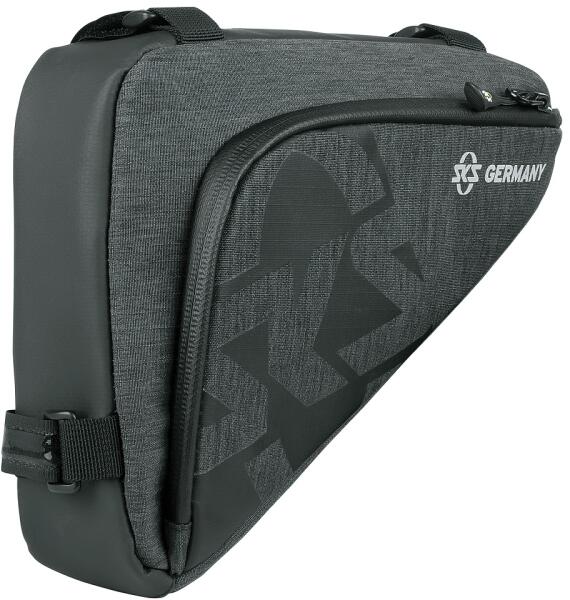 A SKS Traveller Edge váztáska elegáns és praktikus. Vízálló anyagból készül, és bőséges tárolóhellyel rendelkezik a tartalék tömlőnek, az alapszerszámoknak, kulcsoknak, pénznek és a személyes dolgoknak vagy a mobiltelefonnak. A stílusos dizájnt biztonsági fényvisszaverő elemek egészítik ki. A cipzár vízálló, és csúszkája el van látva cipzárhúzóval az egyszer