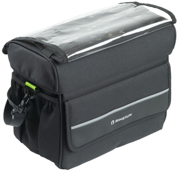 BFHB01 Gyorskioldós rögzítésű kormánytáska - 600D rPET (újrahasznosított anyag) - W/R kezelés (vízlepergető) - QR Mount (gyorszáras) rögzítés - Gyors hozzáférést tesz lehetővé - Belső hálós felosztás - Külső hálós és elülső zsebek - Kivehető térkép/tablet tok - Levehető vállpánt - A fényvisszaverő logó növeli a láthatóságot éjszaka - Jó kapacitás a k
