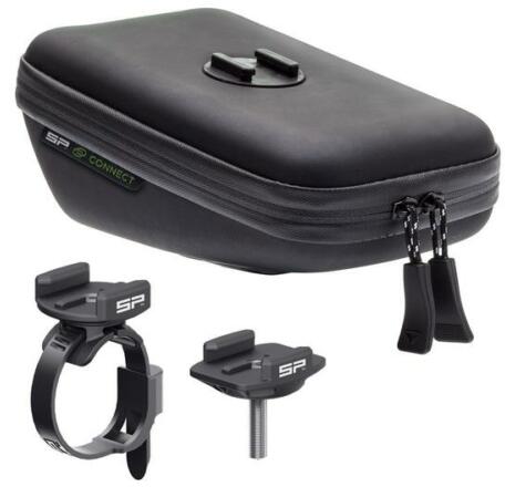 SP Connect nyeregtáska és telefon tartó szett, fekete Vízlepergető anyagból készült táska, mely védelmet nyújt a kerékpározáshoz használt eszközöknek. Az SP Connect telefon tokok és LED villogók közvetlenül rácsatlakoztathatóak. Két zipzár a könnyebb hozzáféréshez. Könnyen a kerékpárra erősíthető a hozzáadott tartókkal, vagy használható a GoPro kompatibilis t