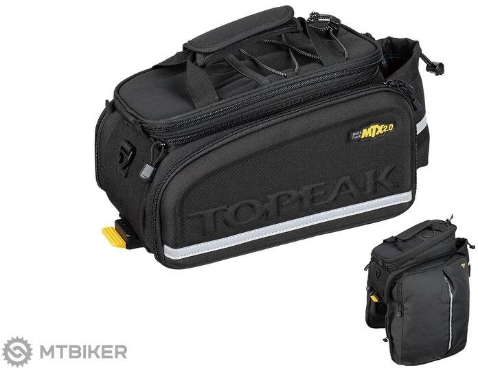 A népszerű kerékpáros poggyász újabb, továbbfejlesztett változata nagy kapacitással MTX sorozatú hordozókhoz QuickTrack 2.0 rendszer oldalsó sínekkel. A fejlesztés az új MTX QuickTrack 2.0 szorítóplatformban (a Topeak sorozatú TUBULAR, UNI, TETRA RACK hordozókon használatos), a karcsúbb külső kialakításban, a fényvisszaverő elemekben a feszítőkötélen és a poggyász