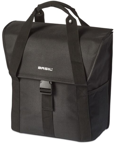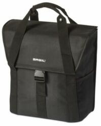 BASIL GO-SINGLE BAG, kerékpáros táska, kiváló minőségű anyagból, a fő rekesz zsinórral összehúzható, két oldalán zsebekkel, fogantyúkkal, Hook-On Rögzítő Rendszerrel, extra fényvisszaverővel, 16L-es Mérete: 33 x 17 x 41 cm fekete