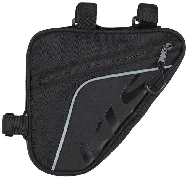 A Kellys Wedge Eco egy praktikus táska, amely a felső vázcső alá rögzíthető. Erre állítható tépőzár szolgál, amely nagyobb rázkódások esetén is garantálják a táska stabilitását és a tartalom biztonságát. A passzív biztonságod kerékpározás közben javítja a fényvisszaverő elemek készlete. A táskában elfér például egy pénztárca, egy telefon, egy kis tízór