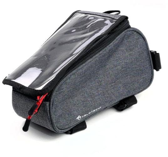 Velotech Grey 1 részes felsőcső táska levehető telefon tartóval, 1,3L, szürke 1 részes telefontartós felsővázcső táska A telefontartó tépőzárral kapcsolódik a táskához és teljesen levehető Anyaga: 600D vízlepergető polyester Szín: Sötét szürke Tépőzáras rögzítés a könnyű fel és leszereléshez Átlátszó PVC borítás a mobiltelefon használatához Merevített