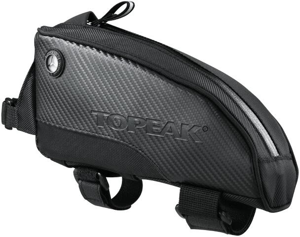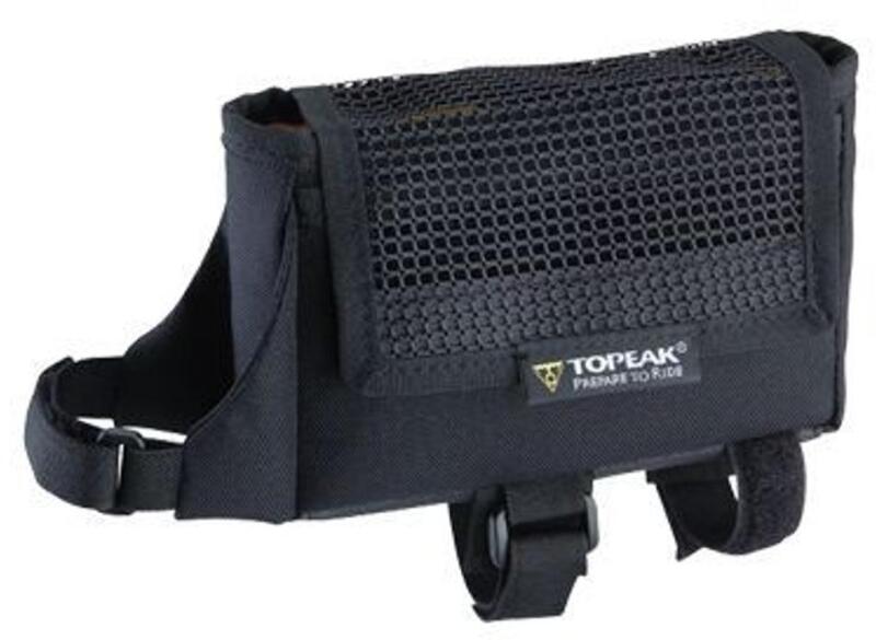 Large capacity top tube mounted bag giving cyclists quick and easy access to energy bars, phone, wallet, tools or any small essential gear they need close at hand. Features battery cable access for charging a mobile device.