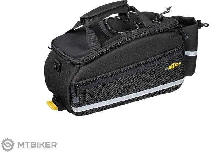 A népszerű kerékpáros poggyász újabb, továbbfejlesztett változata közepes kapacitással az MTX sorozatú QuickTrack 2.0 rendszer hordozói számára. A fejlesztés az új MTX QuickTrack 2.0 szorítóplatformban (a Topeak sorozatú TUBULAR, UNI, TETRA RACK hordozókon használatos), a karcsúbb külső kialakításban, a fényvisszaverő elemekben a feszítőkötélen és a poggyász tetej