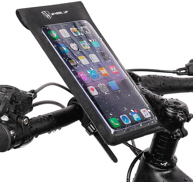 Functional waterproof handlebar bag, with built in phone case. Made of high quality PU, EVA, and TPU plastic. Mounted to the bicycle handlebars. Can accomodate device sizes between 4.7 and 6.7 inches. Deep storage compartment. Specification:Model: XT8 Material: PU, EVA, TPU Dimensions: 252x130x198mm Weight: 641g