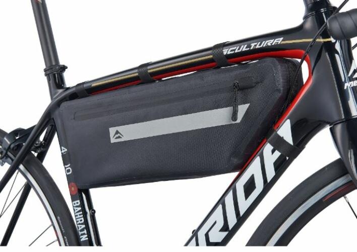 2 literes cipzáras kerékpártáska. Ez egy funkcionális burkolat, amelyet a kerékpárváz alá történő szerelésre terveztek. Lehetővé teszi a tartozékok, kerékpár-eszközök és okostelefon biztonságos szállítását. A fogantyú kiváló minőségű, strapabíró anyagokból készült, ennek köszönhetően ellenáll a mechanikai sérüléseknek és biztosítja a hosszú távú has