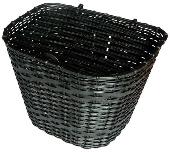 "Rattan hatású fedeles első fix kosár, rugalmas műanyagból. Méret: 35x25x25 cm, Menetes tartozékkal, 26""-as pálcával"