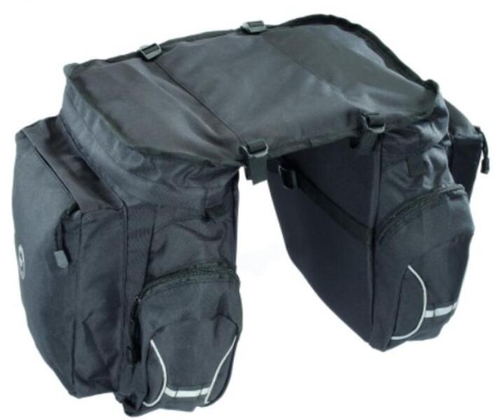 20 liter űrtartalom, Csomagtartóhoz illeszkedő felfogatás, Két kényelmes, nagy rekesz, Két kisebb zseb, Hálós rögzítő a tetején további csomagok szállításához, Fényvisszaverő elemek, Klasszikus, jól bevált forma, 100% poliészter, Mérsékelten cseppálló, Gepida design