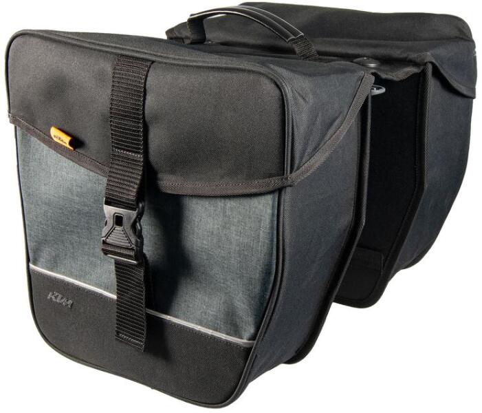Volume: 18 L Details: - Dimensionally stable - Front pockets - Reflective stirps - With handle - Also suitable for folding bikesWeight: appr. 1500 g Adapter bracket for Racktime and for KTM carriers integrated Wide: 270x310x110 mm