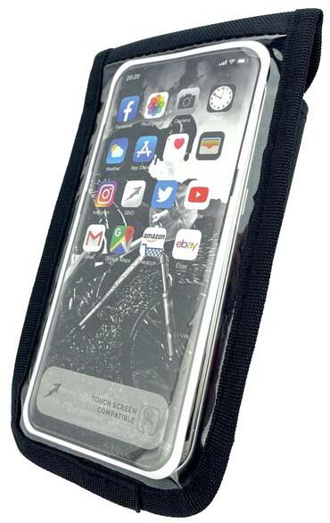 "Velotech telefontartó kormányra, Méret: 11 x 18 cm, Anyaga: 600 D vízlepergető polyester és PVC, Szín: fekete, Könnyű fel- és leszerelés és gyorszáras rögzítés. 360 fokban forgatható. 3db extra kártyazsebbel, A PVC felületen keresztül a készülék használható. "