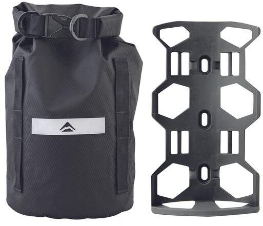 Tulajdonságok Fedezd fel a Merida Gravel villára szerelhető kerékpáros táskát, ami tökéletes választás a kalandokkal teli kerékpározáshoz! A táskában 3 lyukú rögzítési lehetőség található, amely ideális a menetes aljzatokhoz, 65 mm furattávolsággal. A vízlepergető anyagból készült táska (5 literes űrtartalommal) fényvisszaverő logóval rendelkezik, így extra bi