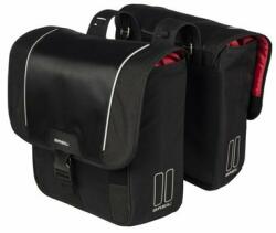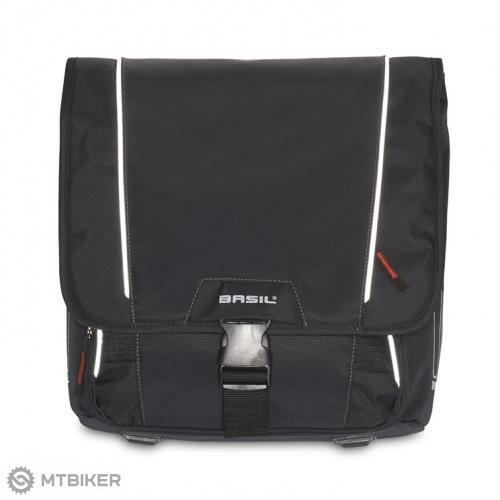 BASIL GO-DOUBLE BAG, kétrészes kerékpáros táska, kiváló minőségű anyagból, a fő rekesz zsinórral összehúzható, két oldalán zsebekkel, fogantyúkkal, fényvisszaverő csíkokkal ellátva, 32L fekete