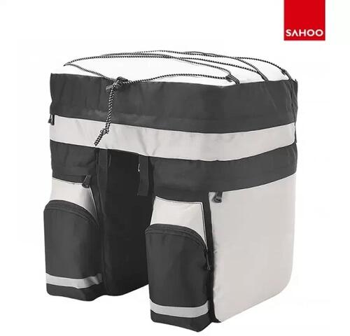 Sahoo 14590-D három részes túratáska hátsó csomagtartóra, esőhuzattal, 50L, szürke-fekete Anyaga: poliészter Részei: 1 felső rekesz, 2 oldalsó rekesz és 2 kisebb hátsó zseb Mind az 5 rekesz cipzáros záródású Fényvisszaverő csíkokkal a jobb láthatóság és biztonság érdekében Külön esővédő huzattal együtt kapható Tetején rugalmas zsinórral a további csomagrög