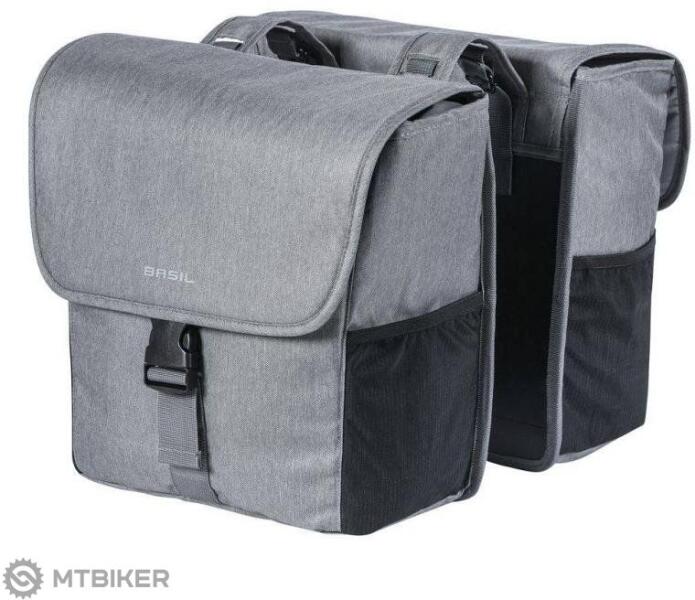 A Basil GO dupla táska a hátsó kerékpártartóra való felszerelésre szolgál. Ideális élelmiszerek vagy napi szükségletek szállítására. A táska tágas fő rekesszel rendelkezik, amelyet húzózsinórral zárhat, valamint mindkét oldalán egy elasztikus külső zseb található. Akkor hasznos, ha egy üveg vizet vagy egy esernyőt szeretne magával vinni. A táska teljes űrtartalma