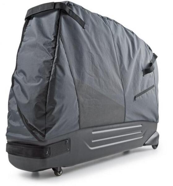 Ez a termék kombinálja a kerékpárszállító táskát a kerékpárszállító bőrönddel. Az alsó rész kemény műanyagból készült, amely biztosítja a védelmet a szállítás során. A felső rész pedig párnázott poliészter táska, amely biztosítja a könnyű súlyt. - alkalmas versenykerékpárok, triatlonkerékpárok és MTB kerékpárok szállításához 29"-es méretig. - 2db