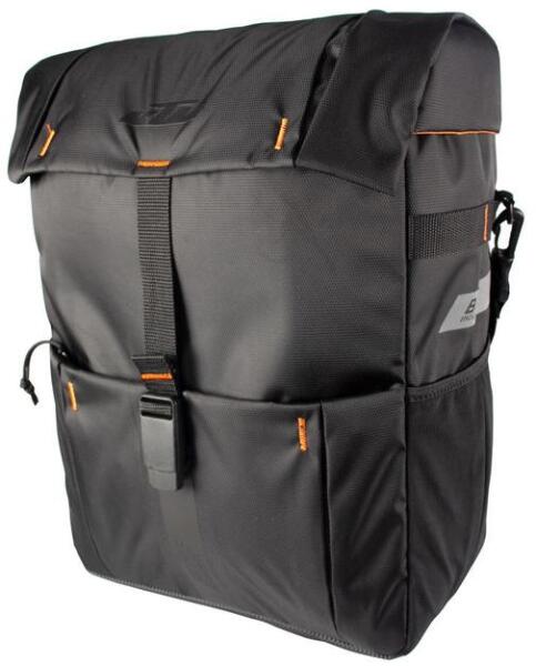 Sporty single bike bag made of water- repellent Polyester. Vario hook for all luggage carrier from Ø 6 - 16 mm Side compartments Rain cover Reflectors practical Shoulder strap.