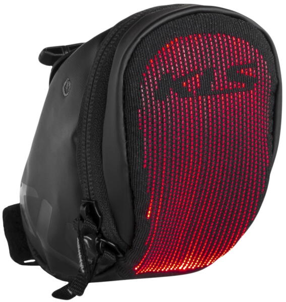A Kellys Slopper Lightning nyeregtáska praktikus tárolóeszköz és szokatlan fényvisszaverő elem egyben! A táska hátsó része fényfonalakból készült, amelyeket USB töltésű akkumulátor táplál. Az akkumulátor akár 4 órát is kibír egy töltéssel. A táska maradék része minőségi, vízálló Tarpaulin anyagból készül. A táska szabadalmaztatott T-tartó segítségével va