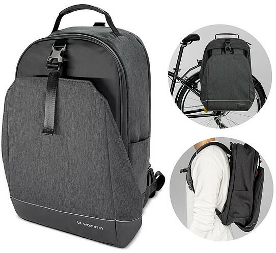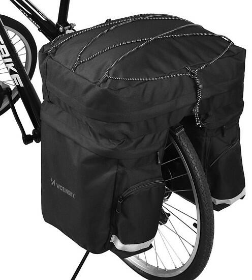 Wozinsky 2 az 1-ben kerékpár csomagtartó táska és hátizsák 30 literes – fekete (WBB33BK) Ez egy nagy űrtartalmú táska – akár 30 liter! Sok minden elfér benne: a ruháktól kezdve az elektronikai eszközökön át a dokumentumokig. A Wozinsky WBB33BK vízálló és strapabíró , és ami fontos, könnyen kényelmes hátizsákká alakítható . Ellenálló a karcolásokkal szemben. E