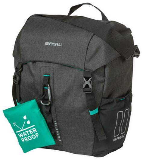 Basil Navigator egyrészes, csomagtartóra helyezhető kerékpáros táska. -Megerősített anyag, csatos nyílás, belül vízzáró anyag -100 % vízálló (IPX3) anyagú, esős időben is védelmet nyújt. -Erős ponyva és 600D poliészter anyag kombinációjából készült. -Roll Top zárórendszer -HOOK-ON rendszerű műanyag kampóval rözíthető a csomagtartó oldalára -Vállpánttal é