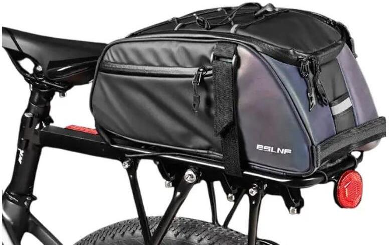 EXKLUZIV VÍZHATLAN CSOMAGTARTÓ TÁSKA NAPI KERÉKPÁROZÁSHOZ, RÖVID TÚRÁKHOZ, 600D BŐR HATÁSÚ VIZHATLAN OXFORD SZÖVETBŐL. ZIPZÁROS ZSEBEKKEL, KULACSTARTÓVAL, LÁMPA TARTÓVAL, FÉNYVISSZAVERŐ CSÍKKAL. LESZERELVE KÉZBEN ÉS KÉNYELMESEN VÁLLON ÁTVETVE IS HORDHATÓ MÉRETE: 35,5X12,5X14,5CM SÚLYA: 370 GRAMM