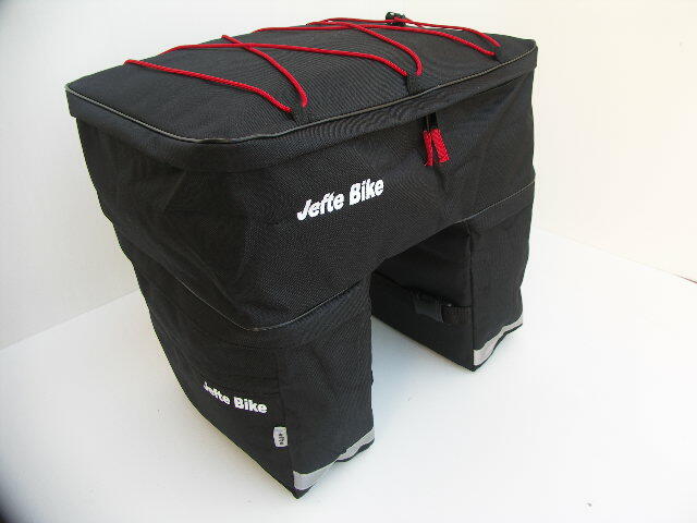 A Jefte 45 literes kerékpáros táska vászonból, erősített cipzárral készül. Hasznos, jól kialakított tároló zsebekkel ellátott. Az egyszerűbb pakolás érdekében a táska felsőrésze könnyen leszedhető, így igény esetén csak az oldalsó táskákat kell cipelnünk! A csomagtartóra egyszerűen felszerelhető. Űrtartalom: 45 liter