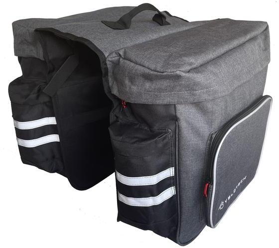 Tulajdonságok Velotech kétrészes hagyományos túratáska Anyaga: 600D vízálló cordura, PE erősítéssel, Szín: fekete, fényvisszaverő szegéllyel, Belső merevítés a stabil tartásért, Két oldalsó és hátsó zseb, 6 ponton rögzíthető (oldalt 2 csattal, felül 4 hevederrel), Tetején fogantyúval, Méretei: 2 x 30x13x30cm Térfogat: 2x 12 liter Súlya: 0,8 kg
